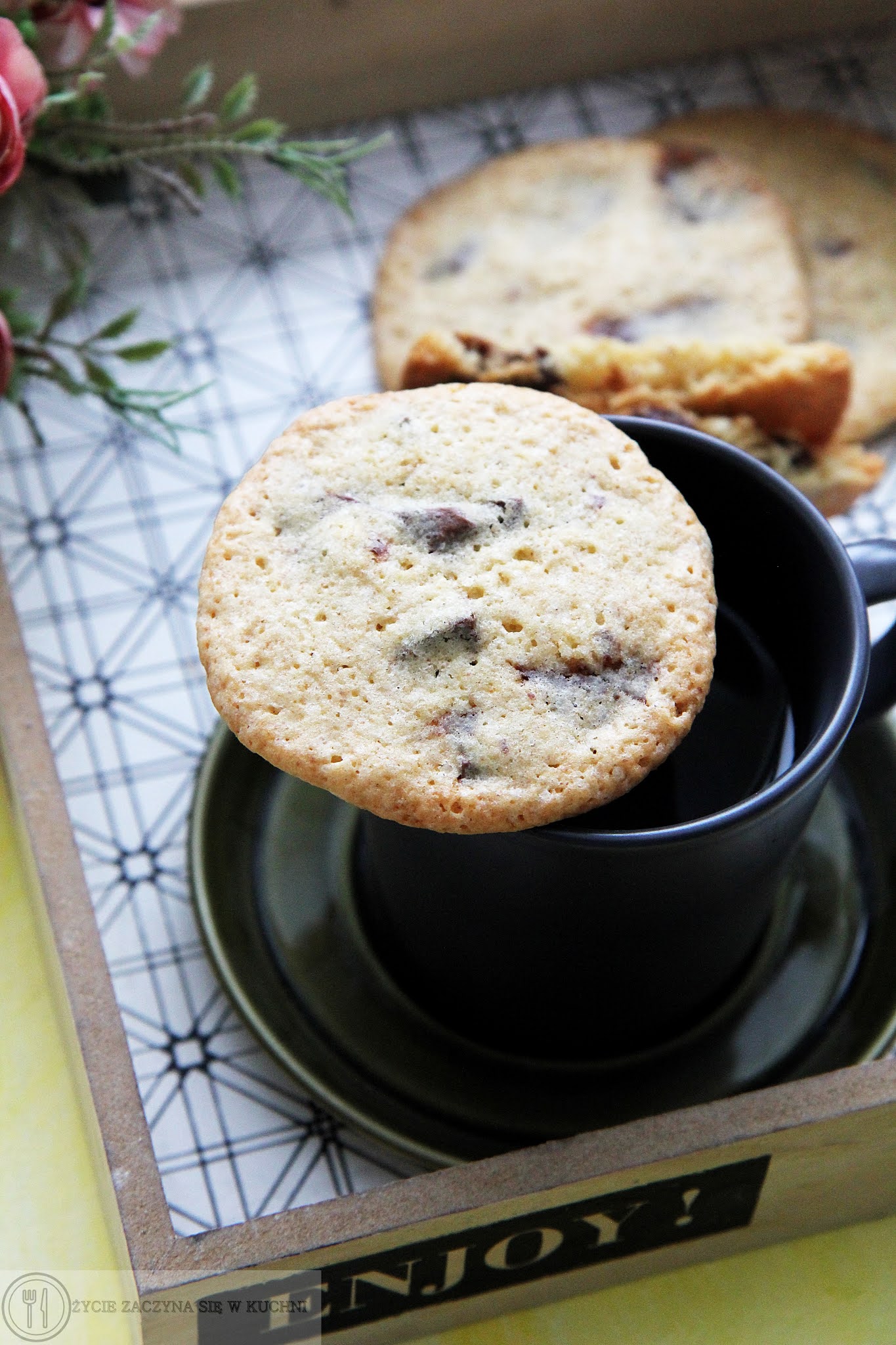 Kruche ciasteczka czekoladą w środku, to szybka i bardzo smaczna przekąska. Idealna na deser czy do śniadaniowki na luch d szkoły czy pracy. Przygotujesz je bardzo szybko. Mało tego przepis jest idealny na wspólne wypieki z dzieciakami. Kilka składników, troche siekania i mieszania,